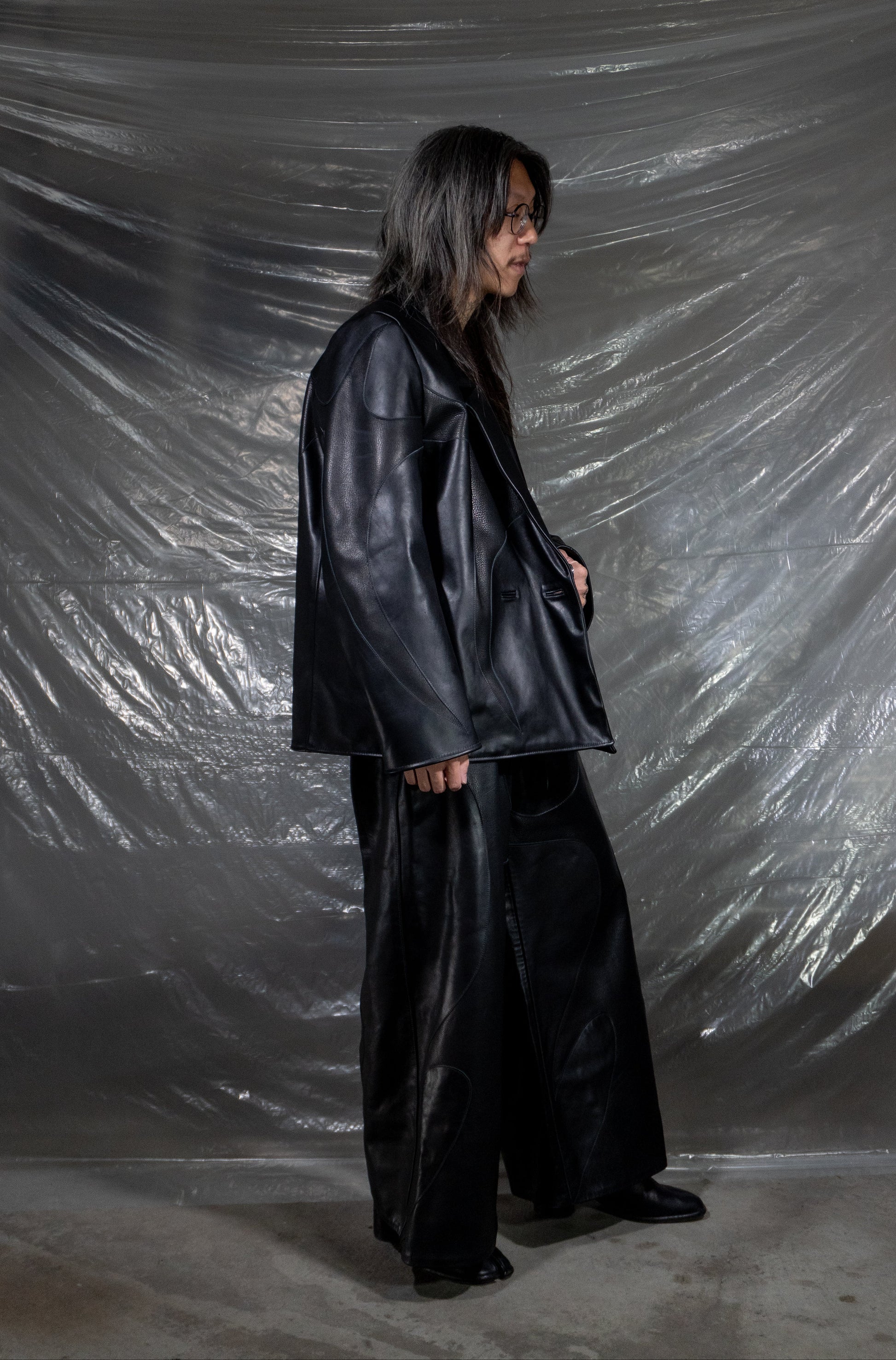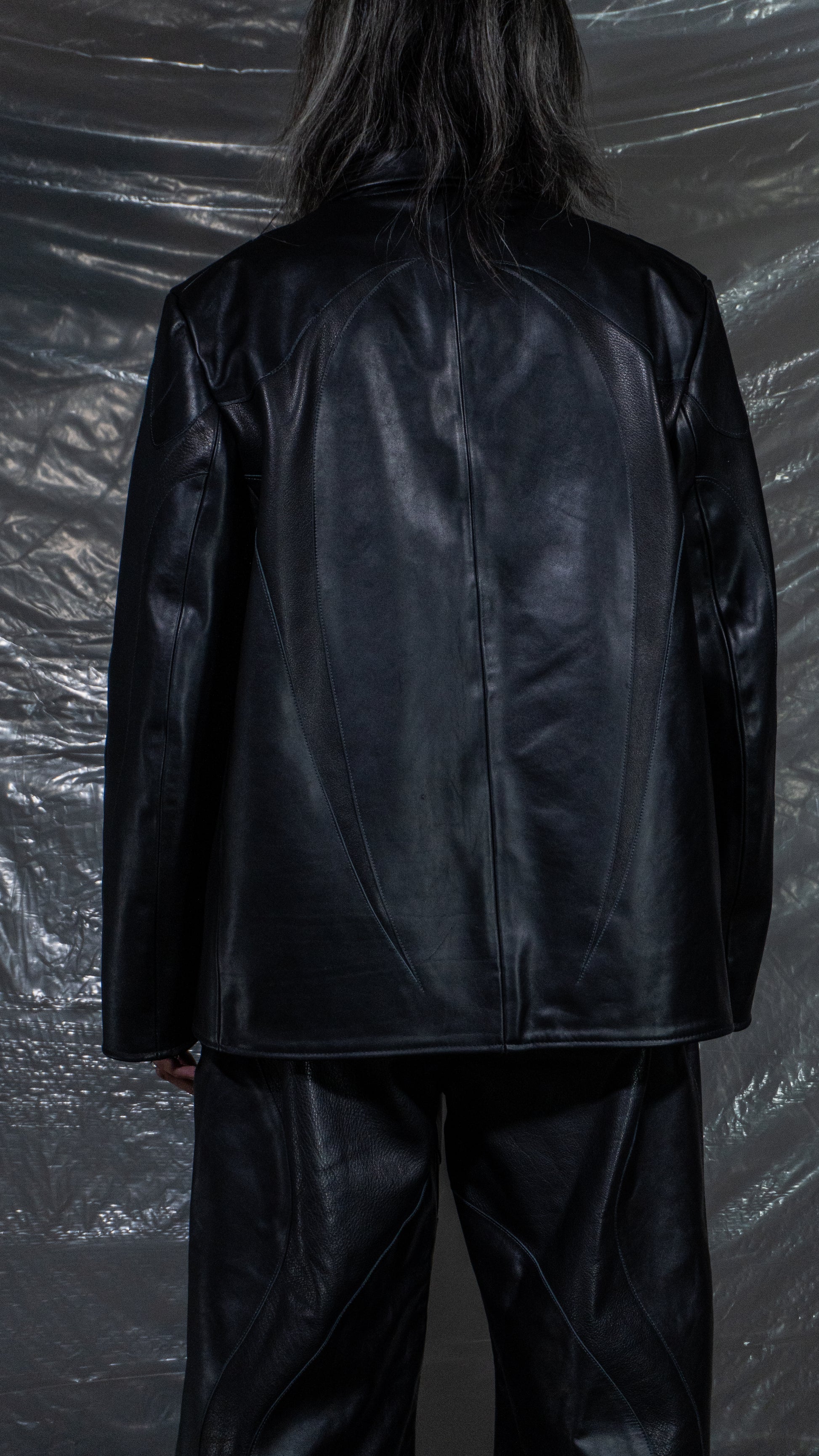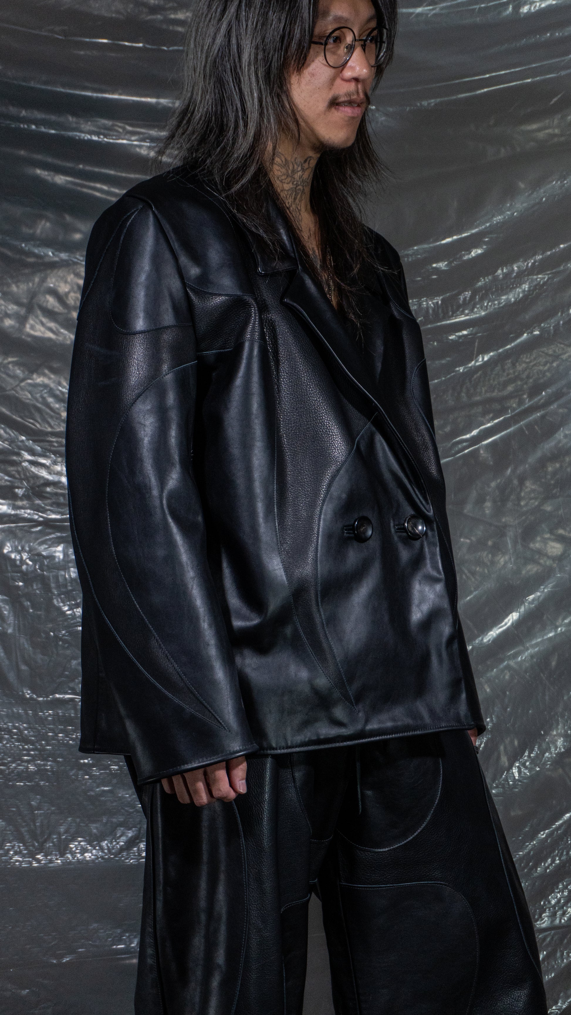 Double breasted blazer. 100% real cow leather with bemberg lining.