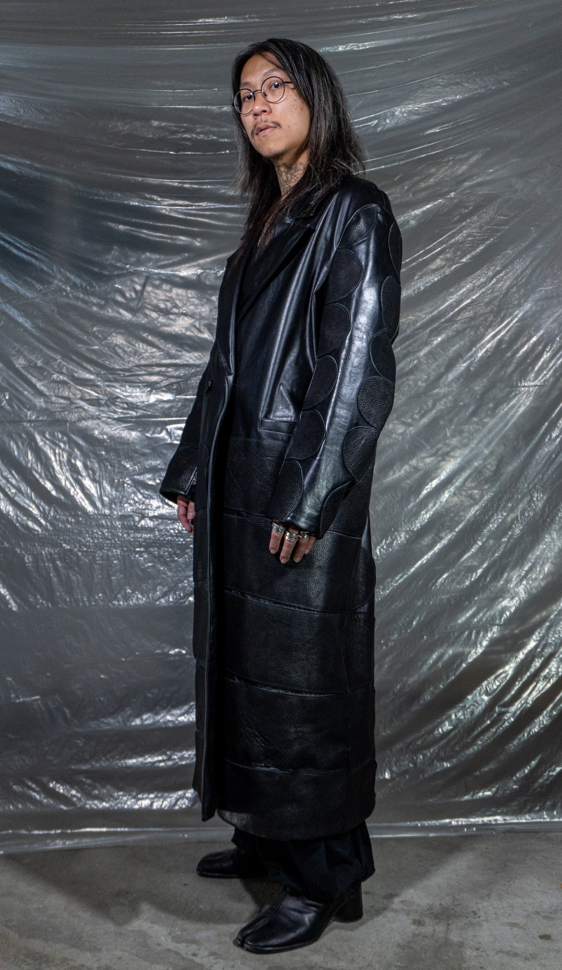 Oversized double breasted trench coat. 100% real cow and buffalo leather with bemberg lining.